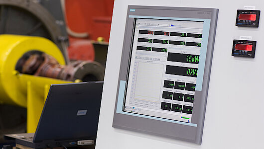Nach den Anforderungen unserer Kund:innen führen wir auf dem DMT-eigenen Prüffeld die unterschiedlichsten Untersuchungen an antriebstechnischen Komponenten durch.