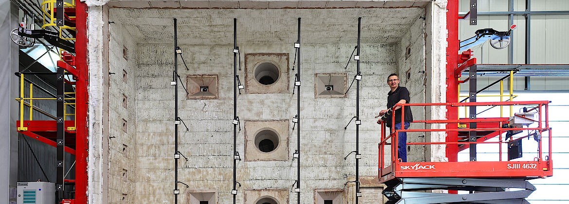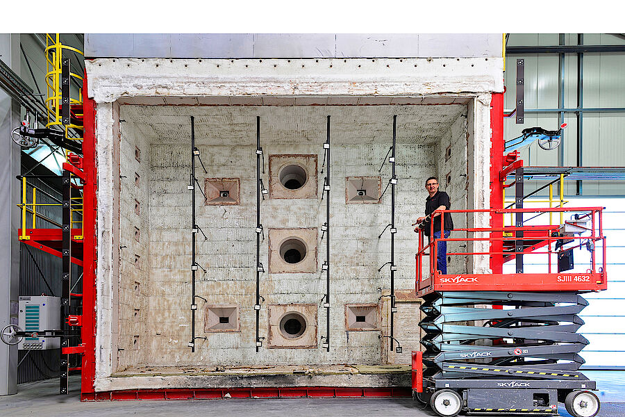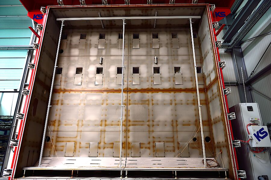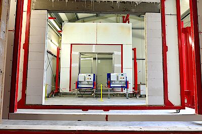 Drei Vertikalöfen bis zu einer lichten Öffnung von 6,4 m x 5,3 m ermöglichen am Standort Lathen die Durchführung von Brandversuchen gemäß DIN EN 1363-1 an
