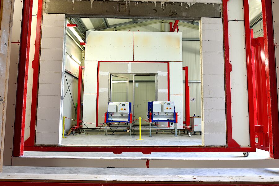 Seit 2010 in Betrieb hat sich der Brandofen in zahlreichen Prüfungen bewährt. Ein spezieller Prüfrahmen ermöglicht zusätzlich die Brandprüftung von Eckausbildungen