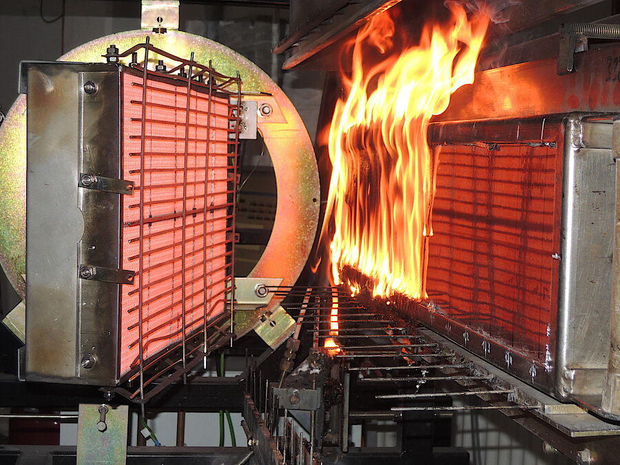 Bei diesem Prüfverfahren wird die Beflammungsanordnung in Vorprüfungen bestimmt.