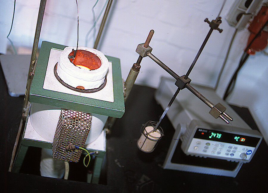 In einem elektrisch beheizten Ofen nach DIN EN ISO 1182 werden zylindrisch geformte Probekörper ( H = 50 mm, Ø = 45 mm ) auf 750° Celsius ( ± 5 °C ) erhitzt. Dabei messen zwei Thermoelemente die auftretende Temperatur. Ein Thermoelement ( Ofenthermoelement ) misst die Temperatur im Inneren des Ofens. Das zweite Thermoelement ( Oberflächenthermoelement ) misst die Temperatur der Oberfläche des Probekörpers.